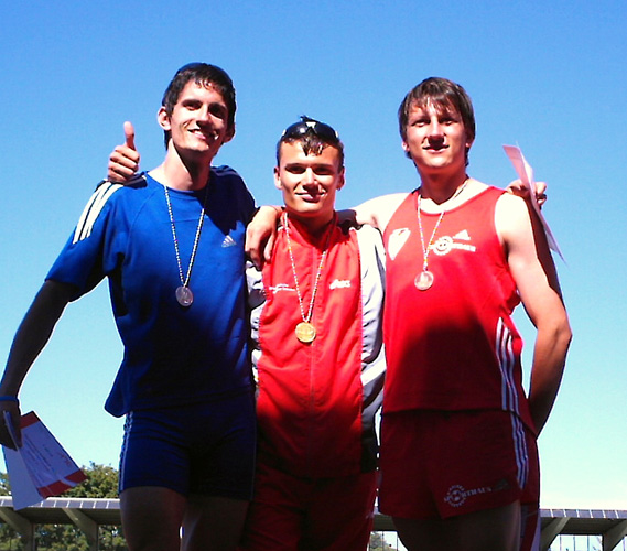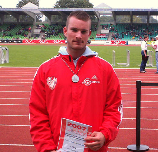 Die Vorzeichen für Gold hätten für David Golling in der Speerwurfkonkurrenz nicht besser aussehen können. Saisonbestleistung in der B-Jugend mit 72,93m und Endkampfteilnahme im Speerwurf als einziger deutscher Starter bei der U 18-WM in Ostrava. Doch Meisterschaften haben so ihre eigenen Regeln. Denn bis zum letzten Versuch lag der Schützling von Ralf Lauenroth, mit geworfenen 71,59m auf Goldkurs. Bis Matthias Dück vom LAV Bayer Uerdingen/Dormagen zu seinem sechsten Versuch antrat. Denn ausgerechnet in diesem gelang ihm der perfekte Wurf auf ausgezeichnete 73,68 m. Nach den vielen anstrengenden Wettkämpfen war David Golling aber dennoch nicht ganz unzufrieden: “Ich bin seit 3 Wochen verletzt und habe Rückenprobleme. Darum kann ich mit dem zweiten Platz leben. Die Saison ist für mich jetzt beendet. Im Winter muss ich mich an den 800 Gramm Speer gewöhnen. Dann werden die Karten neu gemischt.”