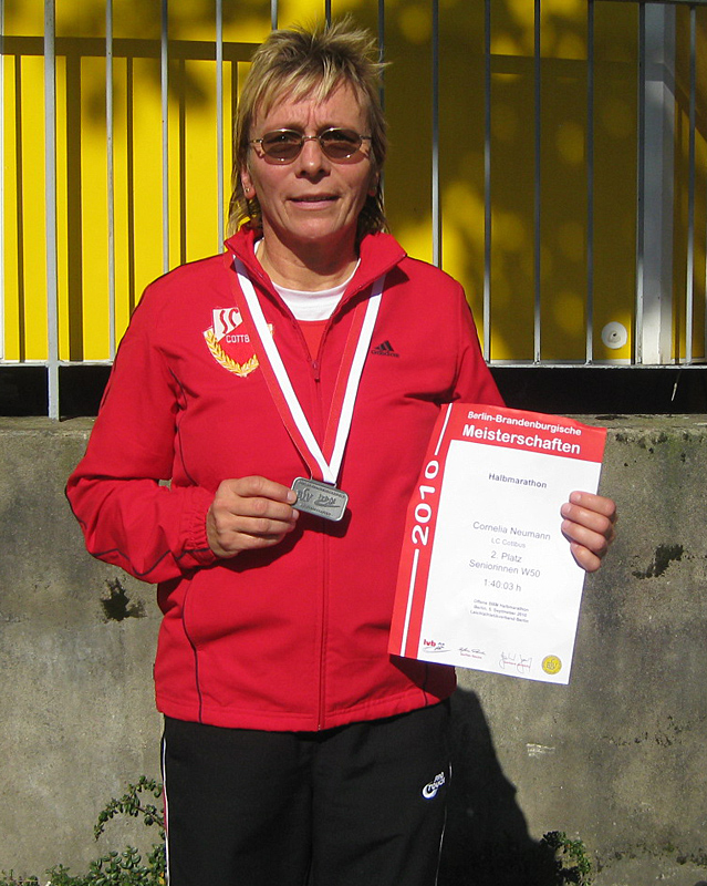 Bei den Norddeutschen Meisterschaften am 5. September in Berlin-Reinickendorf konnte Cornelia Neumann von der LCC-Freizeitlaufgruppe in einer Zeit von 01:40:03 min die Silbermedaille im Halbmarathon in der Altersklasse W50 gewinnen. Unter allen 58 Läuferinnen belegte sie einen sehr guten 17. Platz.