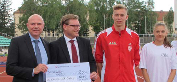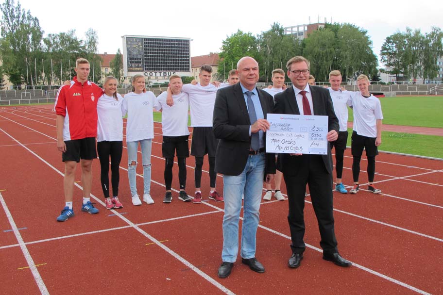 Der Wettkampf bot den Rahmen für die Übergabe einer Spende der AfA AG an den LC Cottbus. Gemeinsam mit Thomas Bergner – Dezernent für Ordnung der Stadt Cottbus – übergab Martin Ruske – Vorstand der AfA AG – einen Scheck in Höhe von 2.500 €.