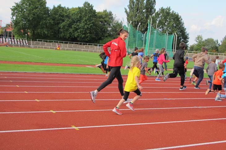 Den sportlichen Abschluss des Tages bildete wie in jedem Jahr die gemeinsam gelaufene Stadionrunde – angeführt von Antje Möldner-Schmidt.