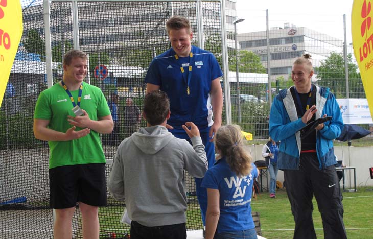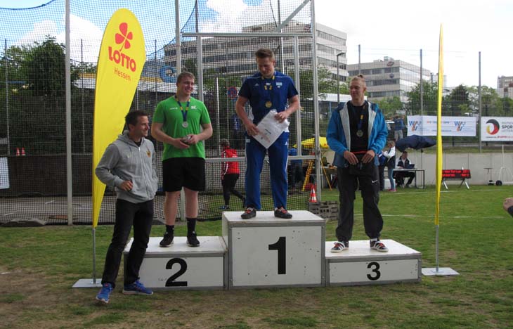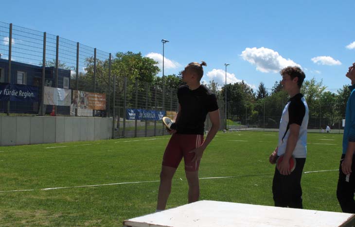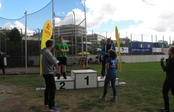 In einem gut besetzten und hochklassigen Wettkampf konnte er sich, nach sehr bescheidenen Einwürfen und sichtbar weichen Knien motivieren und belegte mit neuer persönlicher Bestleistung von 57,25 m (1,75 kg Diskus) einen sehr guten dritten Platz.