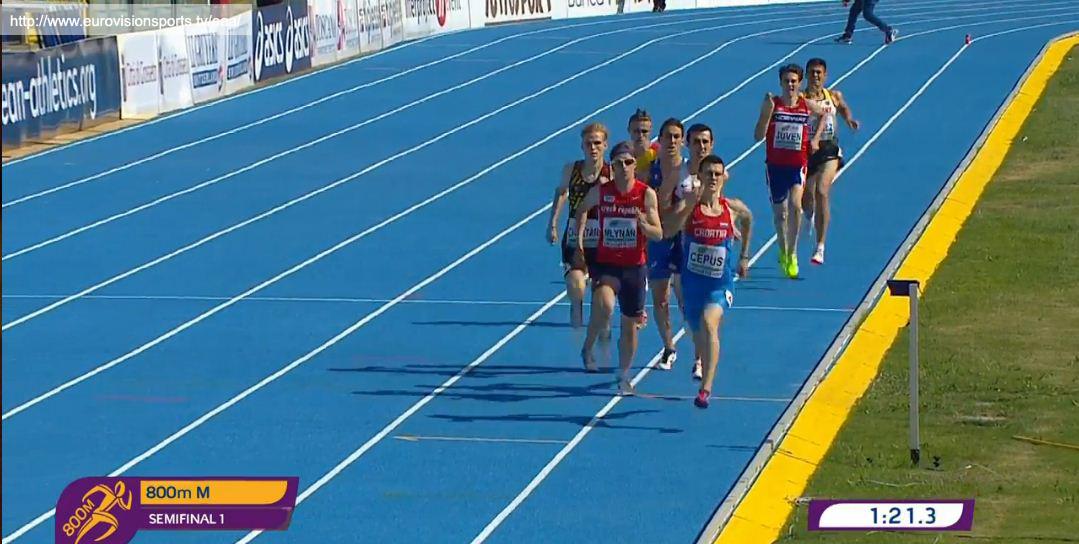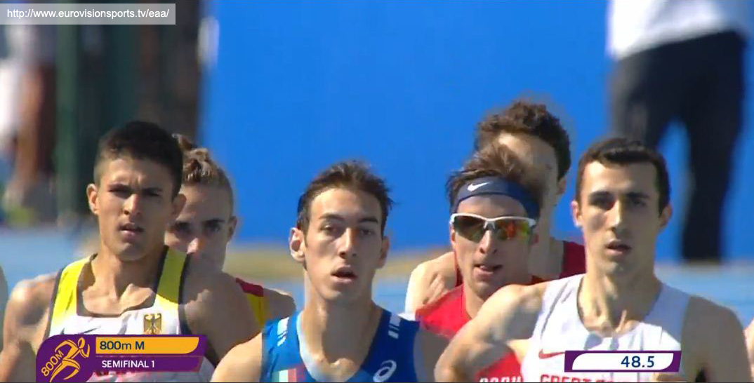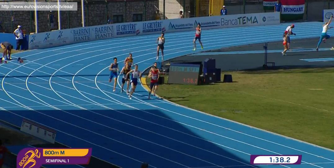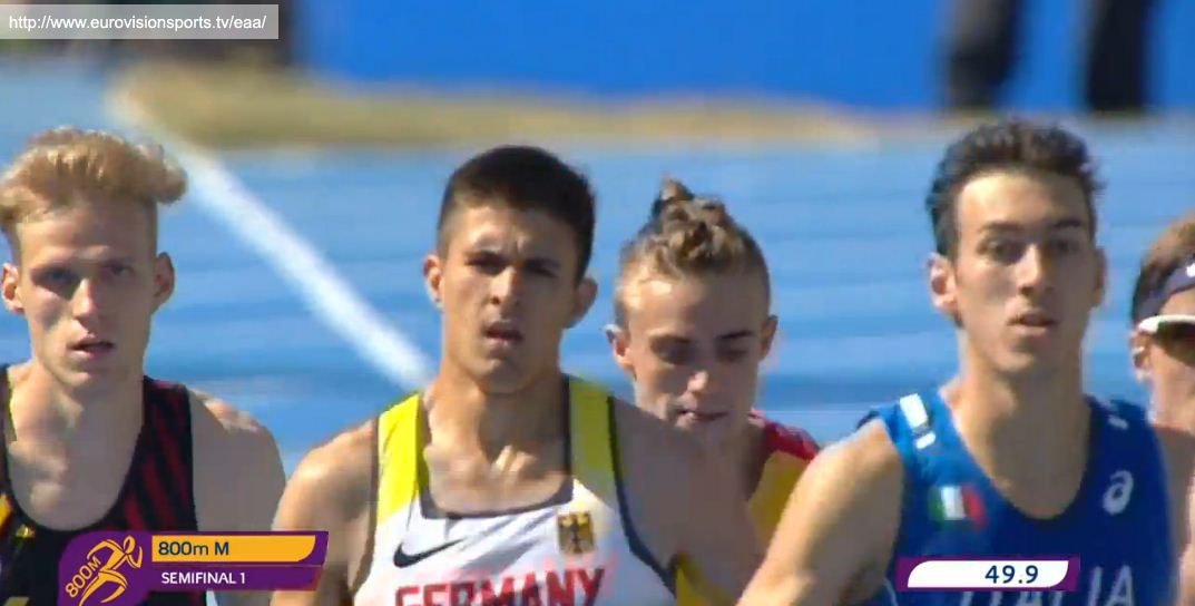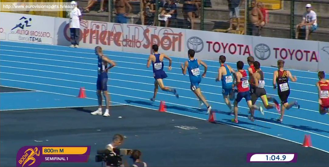 Constantin Schulz lief am 21.07.2017 in Grosseto in einem spannenden Qualifikationslauf die 800 m in 1:52,15 und erreichte damit das Semifinale. Spannend war der Lauf, weil Constantin auf den ersten 500 m in einer ähnlichen Situation steckte wie im Nominierungrennen in Regensburg – er wurde, auf der Innenbahn laufend, regelrecht von seinen Konkurrenten eingeschlossen. Bei ca. ca. 600 m gelang ihm der “Durchbruch”. Nach einer kleinen Drängelei lief er am Feld vorbei. Ein Konkurrent spurtete mit, so dass an dieser Stelle des Laufes das Tempo sichtbar zunahm. Am Ende reichte die Kraft noch aus, um mit einem sicheren 4. Platz das Semifinale zu erreichen.