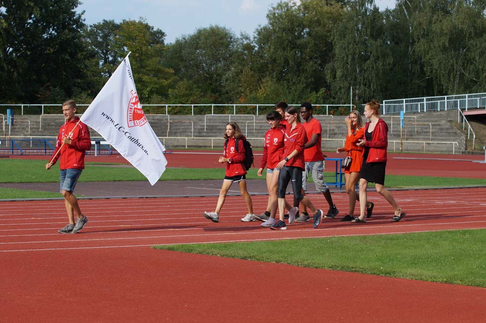 Im Anschluss an den “Einmarsch” wurden erfolgreiche Sportler für ihre herausragenden Leistungen geehrt. Eine Ehrung erhielten u.a. Marie Scheppan als Vizeeuropameisterin U18 über 400m und Deutsche Meisterin über 400m, Antje Möldner-Schmidt als Deutsche Vizemeisterin der Frauen über 3000m Hindernis und EM Teilnehmerin und Constantin Schulz als deutscher Vizemeister U23 über 800m.