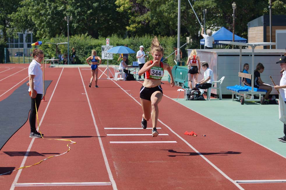 Gefeiert wurden die Meisterschaftstitel von Plamedi Mavinga U18, im Dreisprung und von Skadi Schier U20, hier bei den Frauen startend, über die 100 m Sprintstrecke.