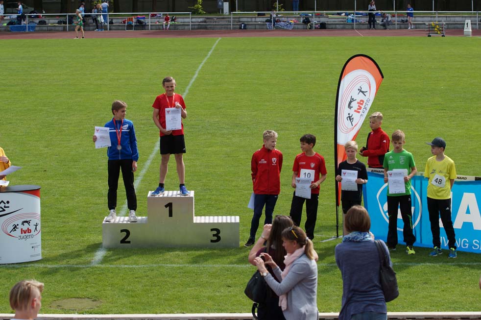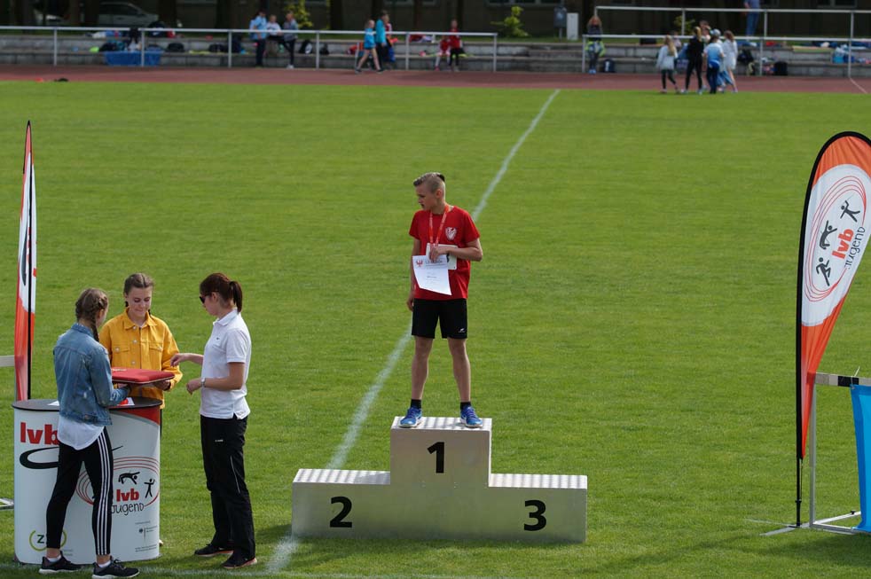 Dazu kamen noch dritte Plätze in der jeweiligen Einzelwertung. Bei den Mädchen erreichte Vivien Fichert mit 1.893 Pkt und Felix Richter U14 mit 1.743 Pkt die Bronzemedaille. Vivien fehlten nur 4 Punkte zum zweiten Platz. Lange war nicht sicher, ob die ausgeglichenen guten Leistungen, der mit einer Beugerzerrung angeschlagenen Vivien, für einen Podestplatz ausreichen würden. Sie konnte zwar gute Leistungen im 75 m Lauf, Weitsprung und Ballwurf erreichen, doch die großen Weiten und die superschnellen Zeiten im Sprint waren heute nicht drin. Nach einem starken 800 m Lauf war klar, es reicht für Bronze und es geht sehr knapp an Silber vorbei. Eine großartige kämpferische Leistung!