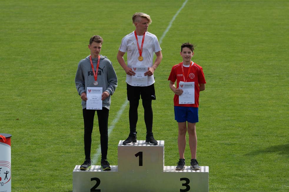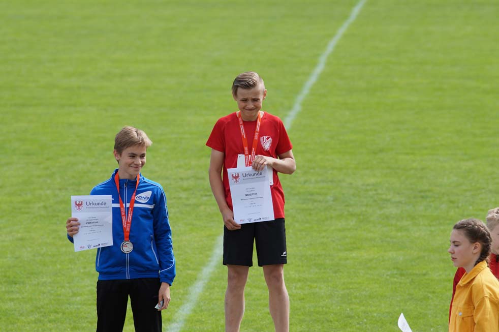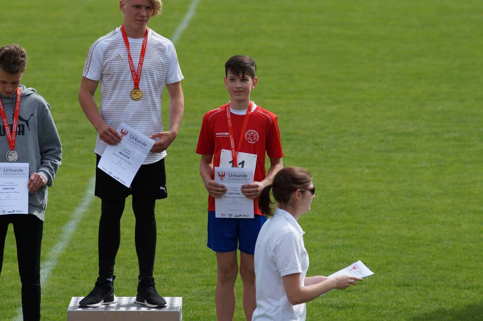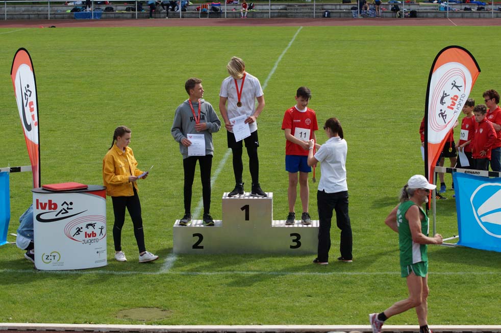 Einzelmeister im Dreikampf (50m – Weit – S.-Ball) der M12 Jungen wurde Gian-Luca Wille mit 1.669 Punkten. Melwin Aust erreichte einen 4. PLatz mit 1.595 Punkten und Richard Mattig wurde 5. mit 1.581 Punkten.