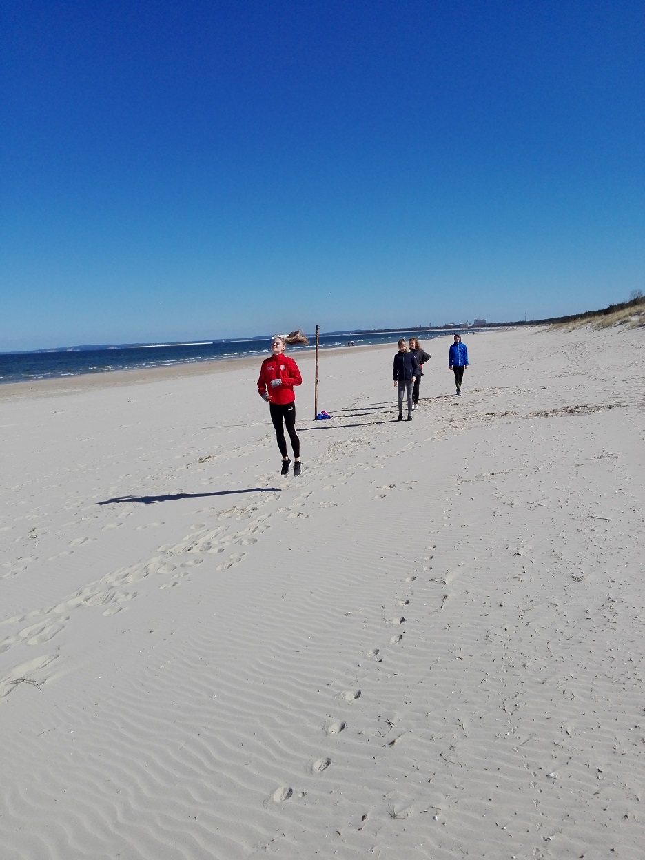 Die Trainingsgruppe Sprung mit 5 Athleten und Lehrer-Trainer Hans-Jürgen Lehmann verbrachten vom 01. bis 05. April fünf Tage in Ahlbeck . Mit dem Training an diesem besonderen Ort sollte der Belastungs- und Umfangshöhepunkt des 5. Trainingsabschnittes abgesichert werden. Das Training stand daneben auch unter dem Motto „den Kopf frei machen“ und neue Motivationen erzeugen. Dazu dienten die Freizeithöhepunkte – ein Besuch der Ostseetherme, eine Radtour nach Peenemünde und Freizeitaktivitäten ohne Fernseher. Gutes Wetter, Sonne, Wind und Strand sorgten für gute Stimmung unter den Athleten, auch wenn oder vielleicht auch weil der Morgen mit Frühsport am Meer begonnen wurde.
