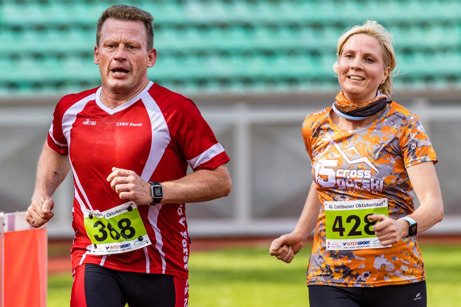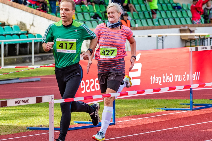 Am Sonntag fand bei schönstem Herbstwetter der 46. Cottbuser Oktoberlauf statt. Im Leichtathletikstadion fanden sich 285 Teilnehmer ein. Im ersten Wettbewerb gingen 50 kleine Bambinis (1 bis 7 Jahre) auf die 400 Meter Stadionrunde. Darauf folgte der Junior-Cross, als neue Strecke über 2 Kilometer, für die 7 bis 13-jährigen. Rund 45 Kinder absolvierten die, mit leichtem Anstieg und wurzligen Passagen versehene, anspruchsvolle Runde. Hier siegten mit Ella Kurzmann in 8:46,1 min und Alexander Bönisch in 9:22,2 min, zwei Athleten vom TSV Cottbus. Die 5 und 10 Kilometer Strecken führten wieder durch die herbstliche Landschaft des Madlower Volksparks. Mit großen Vorsprung siegte bei den Frauen über die 10 Kilometer, Blanka Dörfel in 37:08,2 min vom gastgebenden Verein LC Cottbus und bei den Männern ihr Vereinskollege Constantin Schulz in 35:56,8 min. Den Sieg über die 5 Kilometer holten sich bei den Frauen Zora Schalow in 20:39,6 min und bei den Männern Justus Wegner vom SV Olympia Cottbus e.V. in 17:43,4 min.