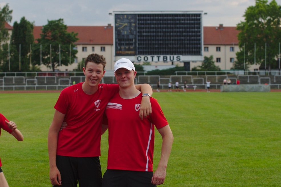 Sie packten es beim letzten Abendsportfest des LCC am 21.06.2023: Hannes Eckert und Fiete Wauer werfen jeweils Bestleistung und damit die Norm zur Teilnahme an den Deutschen Meisterschaften der U18. Hannes warf persönliche Bestleistung von 48,86 m mit dem Diskus und Fiete mit ebenfalls persönlicher Bestleistung den Speer auf 57,36 m. Beide hatten hart auf dieses Ziel hintrainiert, wobei  mit diesem Leistungssprung bei beiden in diesem Jahr keiner gerechnet hatte. Dementsprechend groß war die Freude über den Erfolg.