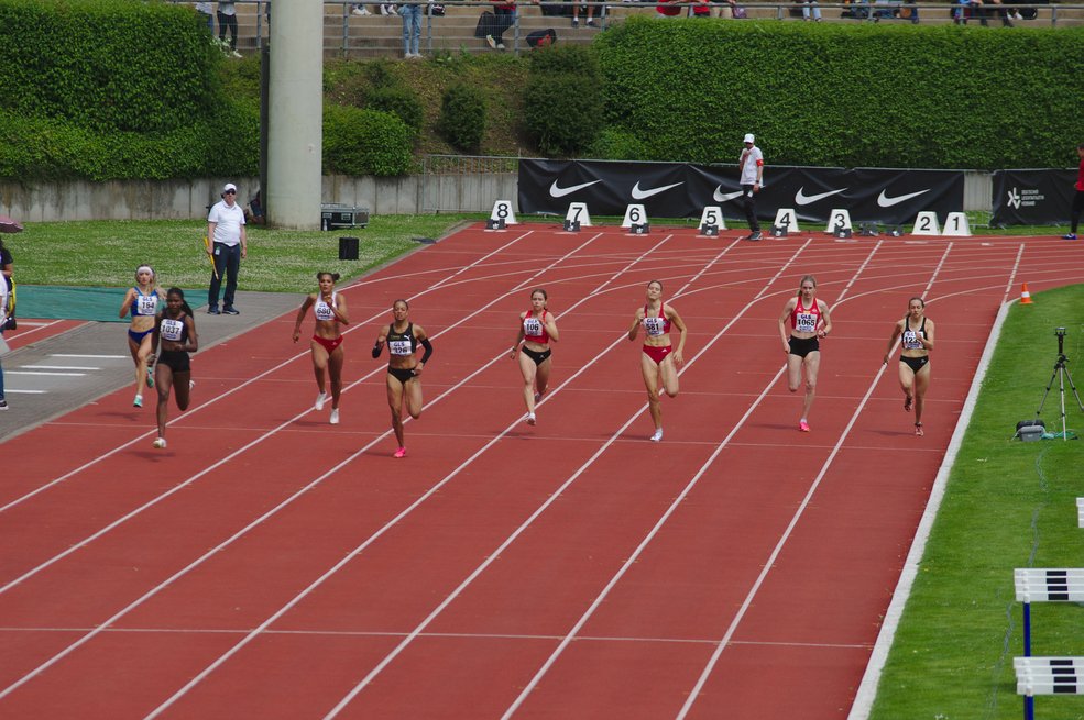 Einen starken Wettkampf zeigte Celine Müller U20, die über die 100m und 200m Strecke bei den U23 Frauen sprintete. Mit einer Zeit von 11,94s holte sich Celine im Vorlauf das große “Q”, das die direkte Qualifikation für das Halbfinale bedeutete. Im Halbfinale kam sie mit 2 weiteren gleich schnellen Läuferinnen und einer Zeit von 11,89s auf den 7. Rang. Hier entschieden nur die tausendstel Sekunden über die Plätze. Für die Teilnahme am Finallauf hat es diesmal noch nicht gereicht, aber sie ist auch erst U20…