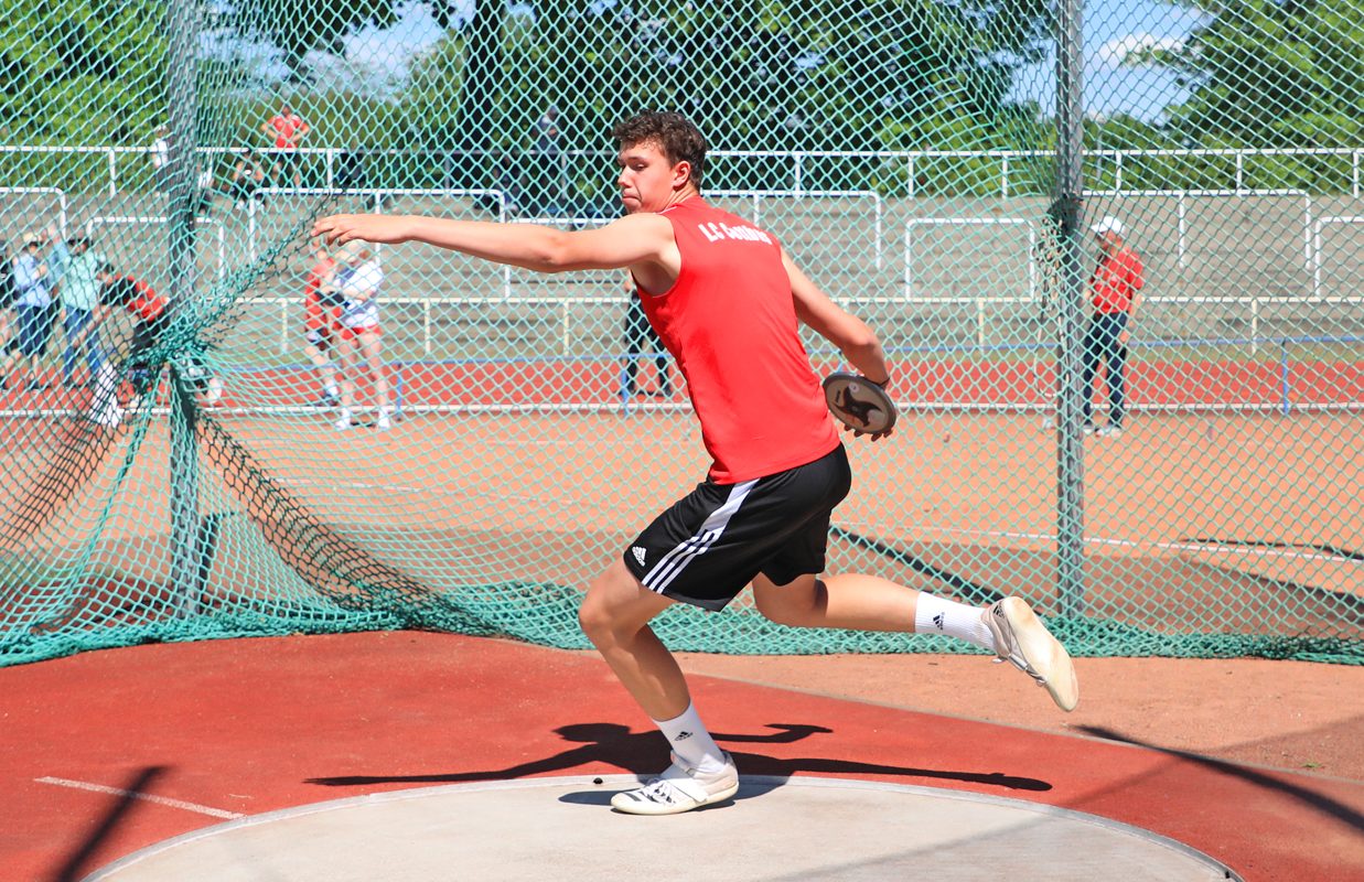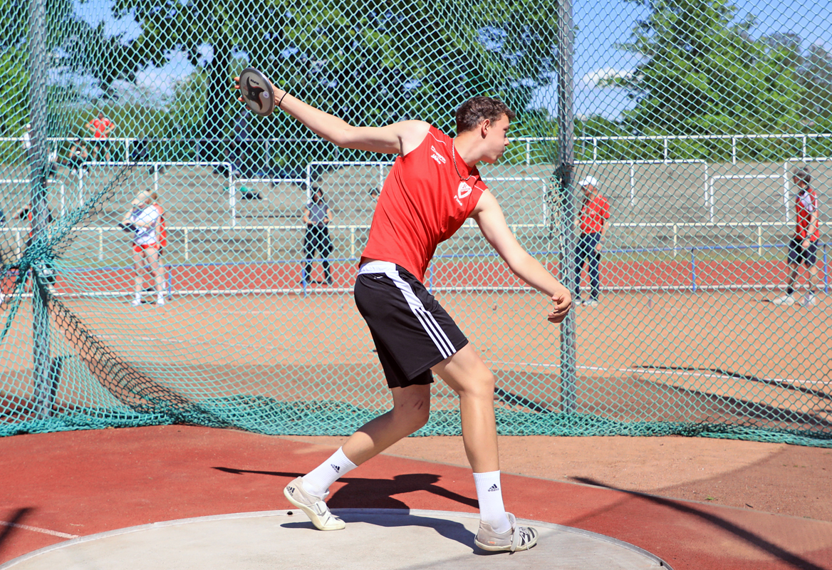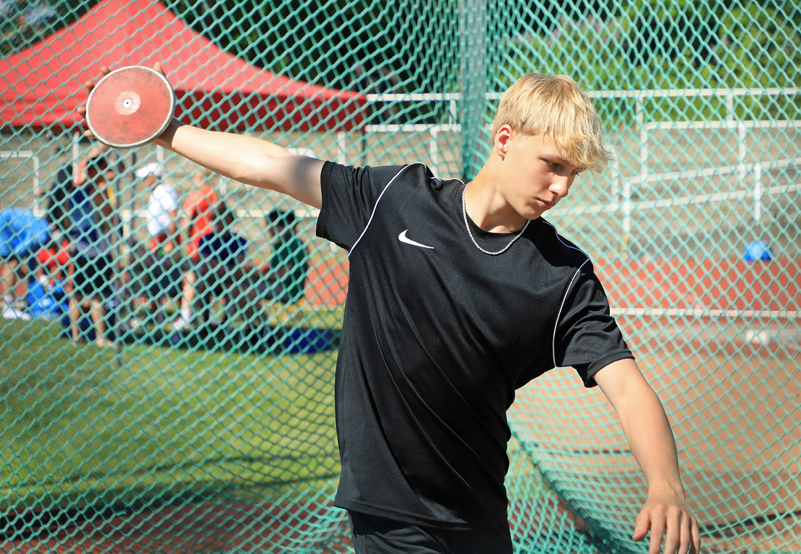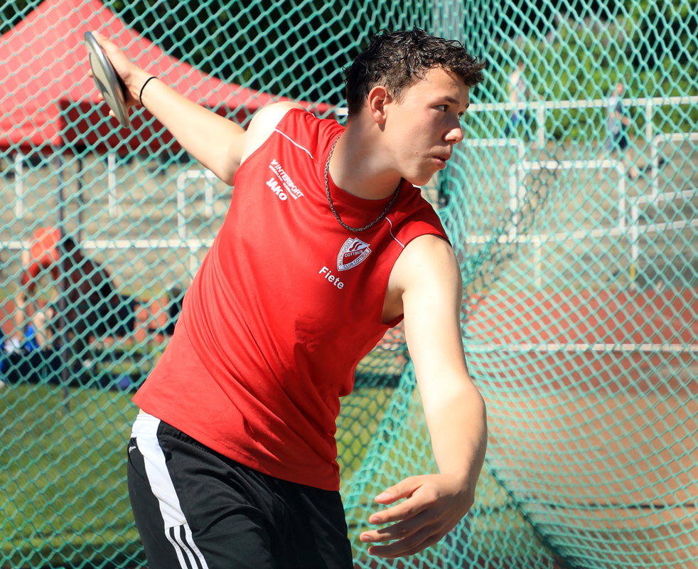 Im Diskuswurf warf Fiete auch eine Bestleistung. Er schleuderte die 1,75kg Scheibe auf eine Weite von 43,97m.