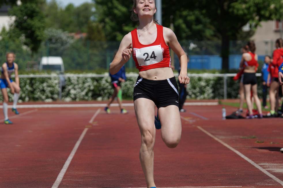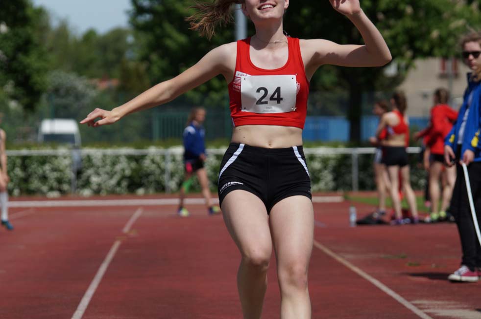 Dazu kamen noch dritte Plätze in der jeweiligen Einzelwertung. Bei den Mädchen erreichte Vivien Fichert mit 1.893 Pkt und Felix Richter U14 mit 1.743 Pkt die Bronzemedaille. Vivien fehlten nur 4 Punkte zum zweiten Platz. Lange war nicht sicher, ob die ausgeglichenen guten Leistungen, der mit einer Beugerzerrung angeschlagenen Vivien, für einen Podestplatz ausreichen würden. Sie konnte zwar gute Leistungen im 75 m Lauf, Weitsprung und Ballwurf erreichen, doch die großen Weiten und die superschnellen Zeiten im Sprint waren heute nicht drin. Nach einem starken 800 m Lauf war klar, es reicht für Bronze und es geht sehr knapp an Silber vorbei. Eine großartige kämpferische Leistung!