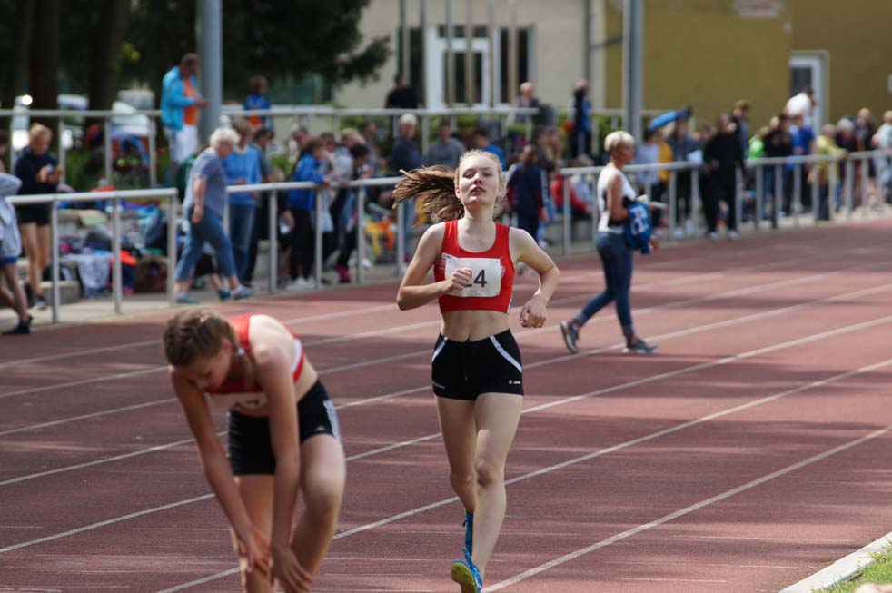 Dazu kamen noch dritte Plätze in der jeweiligen Einzelwertung. Bei den Mädchen erreichte Vivien Fichert mit 1.893 Pkt und Felix Richter U14 mit 1.743 Pkt die Bronzemedaille. Vivien fehlten nur 4 Punkte zum zweiten Platz. Lange war nicht sicher, ob die ausgeglichenen guten Leistungen, der mit einer Beugerzerrung angeschlagenen Vivien, für einen Podestplatz ausreichen würden. Sie konnte zwar gute Leistungen im 75 m Lauf, Weitsprung und Ballwurf erreichen, doch die großen Weiten und die superschnellen Zeiten im Sprint waren heute nicht drin. Nach einem starken 800 m Lauf war klar, es reicht für Bronze und es geht sehr knapp an Silber vorbei. Eine großartige kämpferische Leistung!